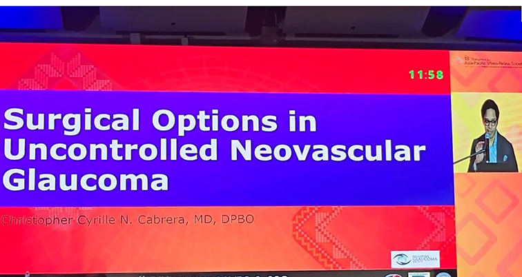 Dr. Christopher Cyrille N. Cabrera (Phillipines) delivered the fourth talk, focusing on the surgical options available for uncontrolled neovascular glaucoma. He emphasized that, despite advances in surgical techniques and devices, outcomes remain variable.